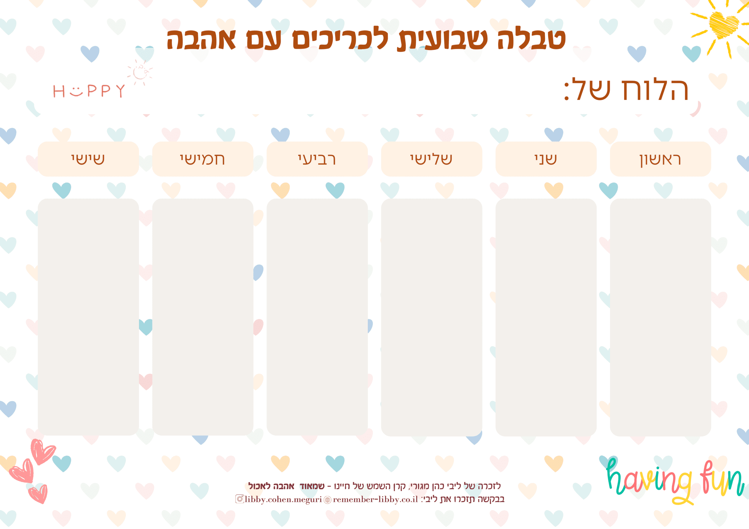 לוח שבועי לבבות 2
